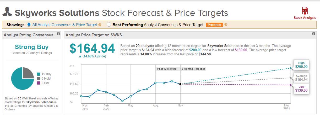 . The Skyworks Solutions stock analysis is based on the TipRanks Smart Score which is derived from 8 unique data sets including Analyst recommendations Crowd Wisdom Hedge Fund. Find the average price target expert sentiment charts stats. Skyworks Solutions stock forecast analyst price target predictions based on 17 analysts offering 12-months price targets for SWKS in the last 3 months.